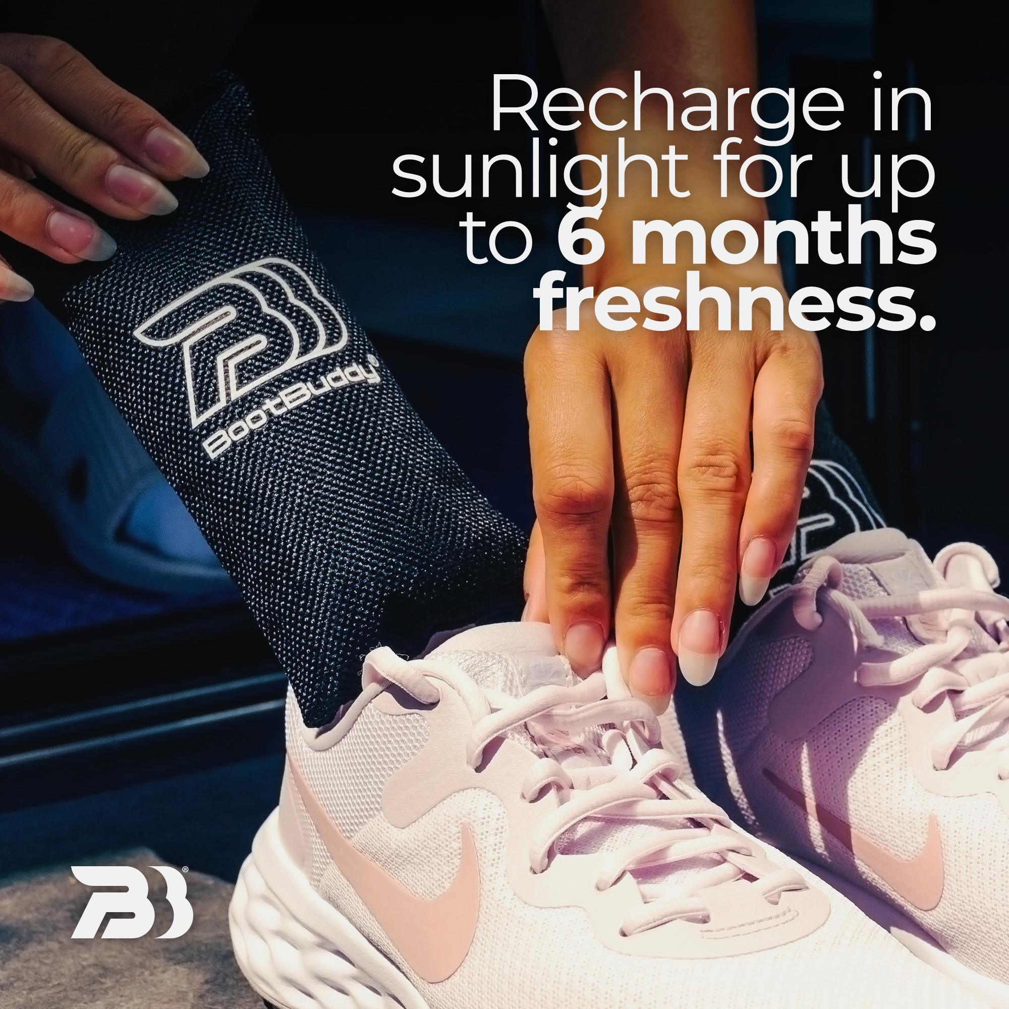 Bamboo charcoal neutralizes odours while absorbing moisture, keeping your shoes fresh and bacteria-free.