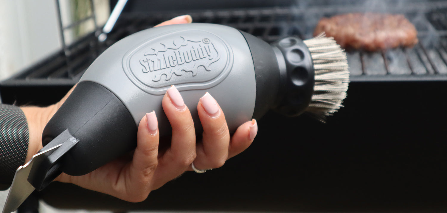 The all-in-one barbecue cleaning solution, combining tools to clean every part of your barbecue however big or small. No more taking your greasy grill inside or trying to fit it into a bowl, the SizzleBuddy lets you clean your barbecue where it is.