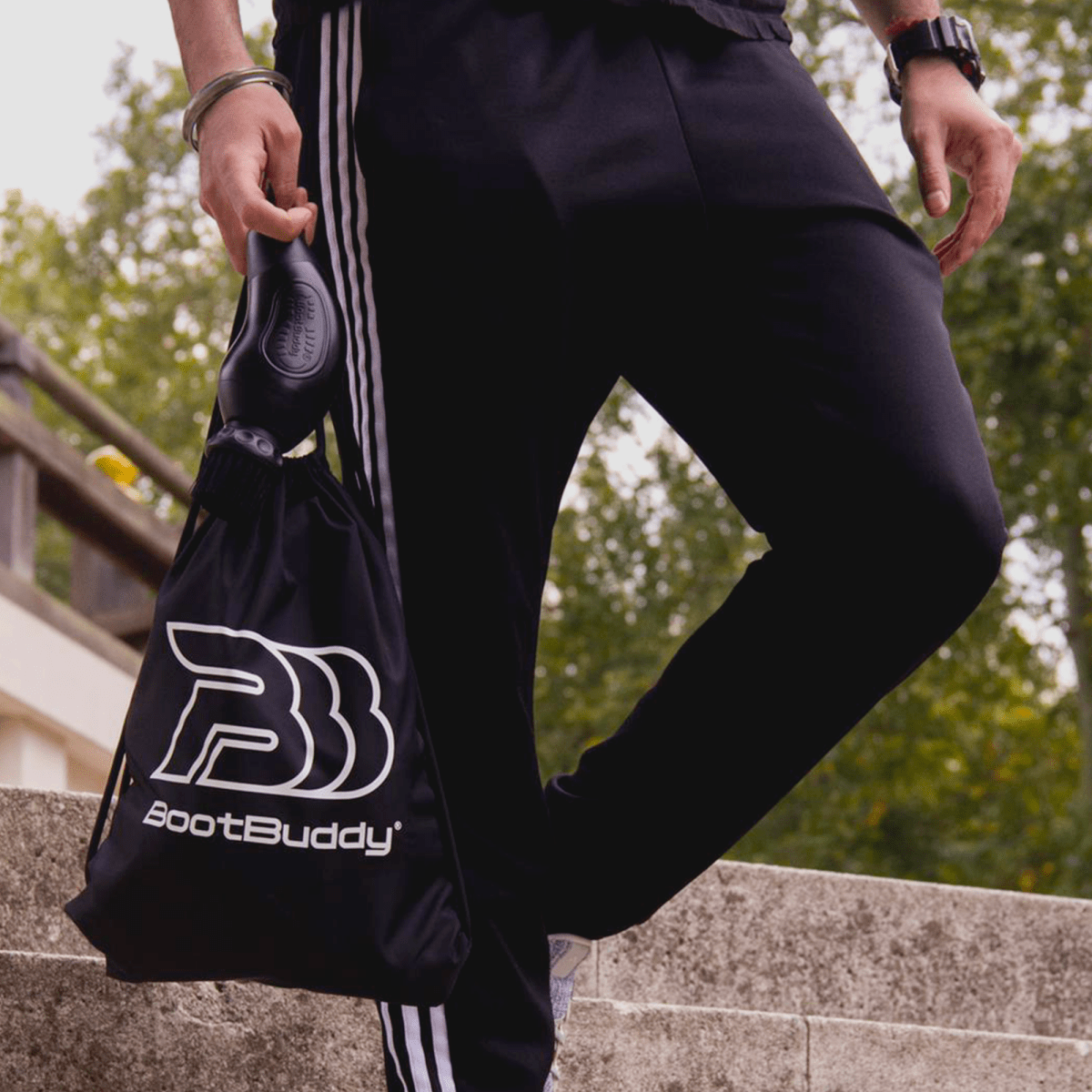 A heavyweight, durable nylon sports bag designed to store your BootBuddy and accessories. Ideal for everyday use, it keeps your essentials organised whether you’re heading to the gym, on-the-move or storing your shoes and accessories in the boot of your car. Simple, functional, and easy to carry.